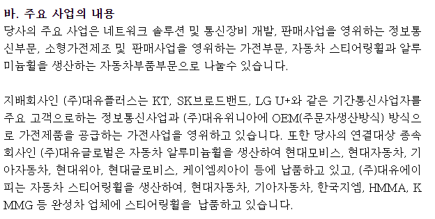 그래도 대유플러스에서 하고 있는 사업들을 보면 IOT 사물인터넷 영역의 이슈와 함께 탈 수 있지 않을까 싶네요.