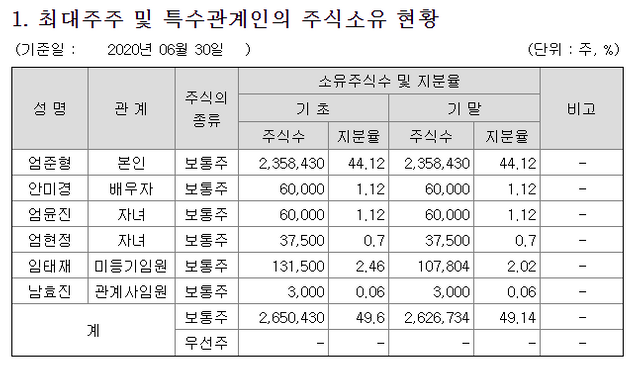 그리고 지분구조를 보니 가족 경영체제입니다.