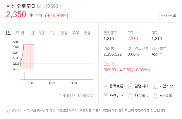 2020년 9월 16일자 급등종목입니다.