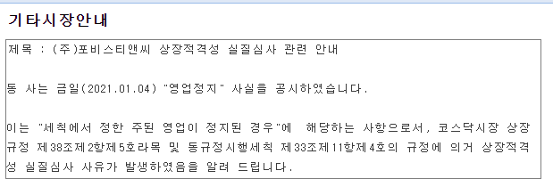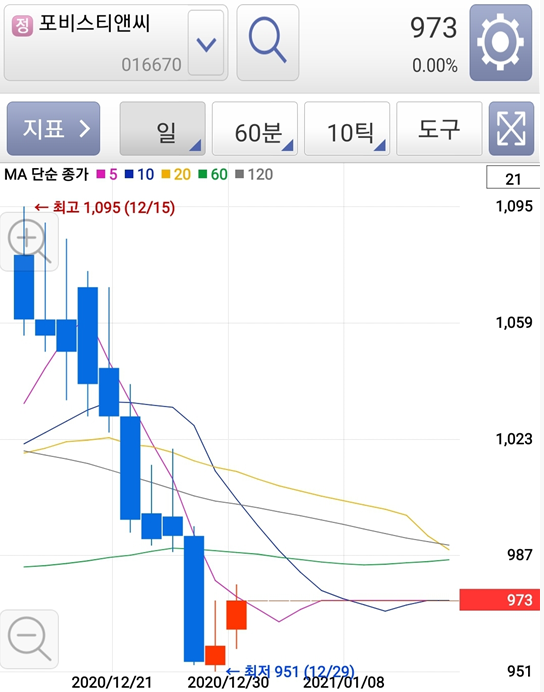 아무튼, 저를 포함해 포비스티앤씨 주식을 갖고 계신 분들은 속상합니다. 갑자기 거래정지가 뜨고 그 상태 그대로 상장폐지 되지 않을까 싶어서죠...주가는 973원에 있지만, 0이 되는가의 기로에 있다는건 참 슬픕니다.