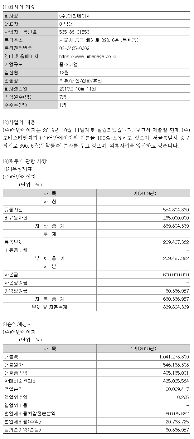 어반에이지 라는 의류회사인데, 그리 큰 회사는 아닙니다.