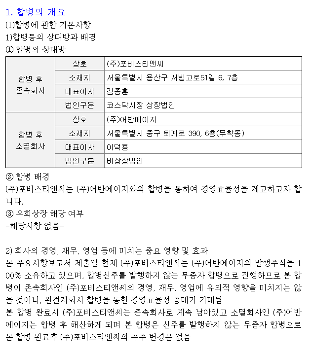 포비스티앤씨의 본업과는 관련이 전혀 없는데, 대체 왜 합병하려는 걸까요? 무슨 이유에서일까요?